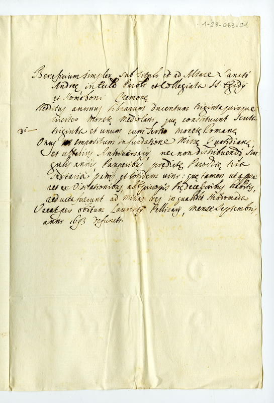 Informazioni sul alcuni benefici della diocesi di Cremona