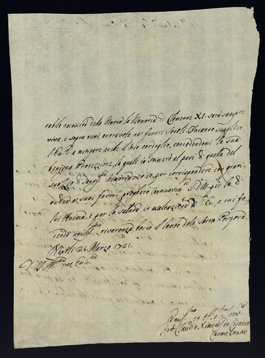 Lettere di condoglianza per la morte di Papa Clemente XI di gloriosa memoria