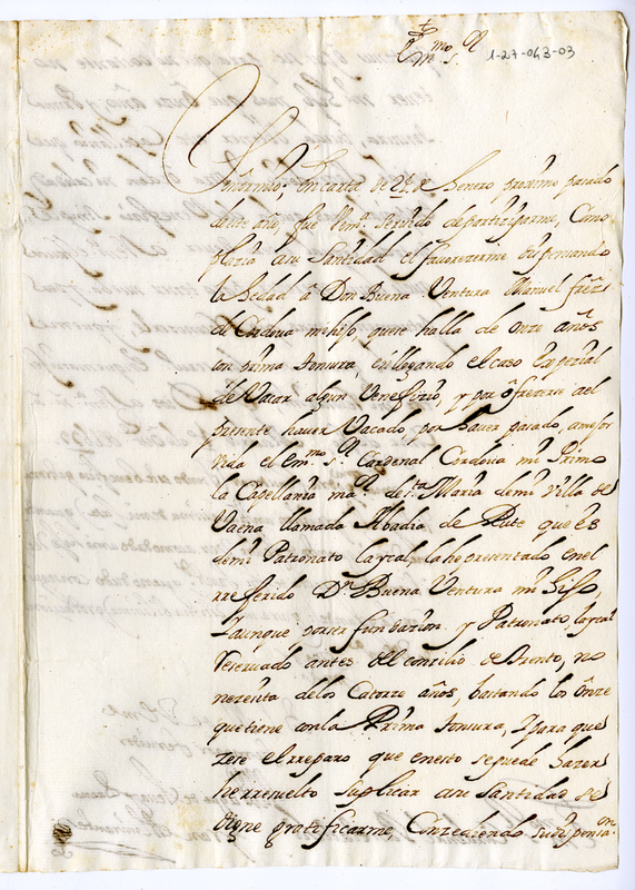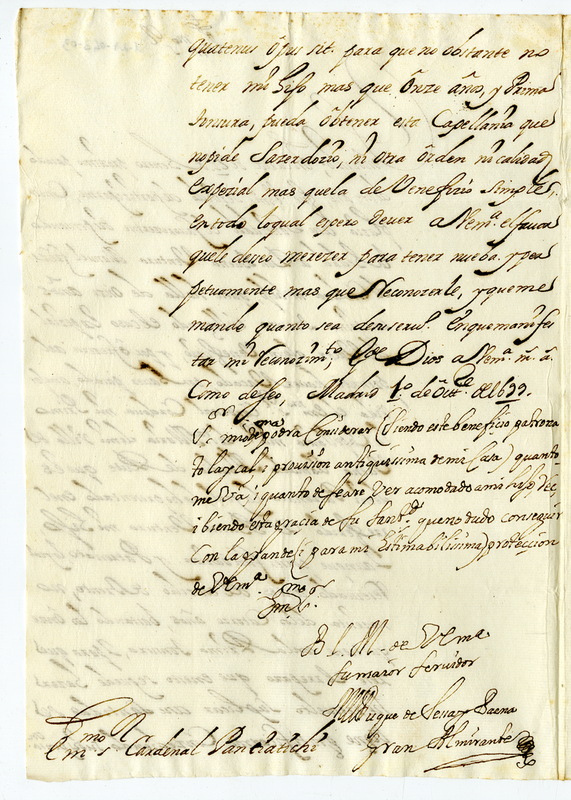 Lettera del Duca de Senaz Baena al Cardinale Panciatici (1699 ottobre 1)