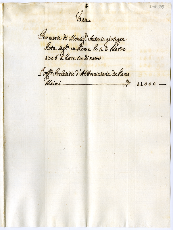 Ufficio prelatizio d'Abbreviatoria de Parco Maiori vacante per morte di monsignor Antonio Giuseppe Rota (1706 marzo 23)