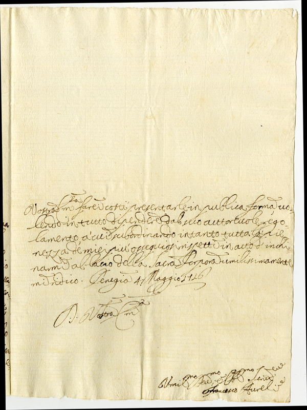 Lettera di Francesco Aureli al Cardinale Annibale Albani (1716 maggio 4)
