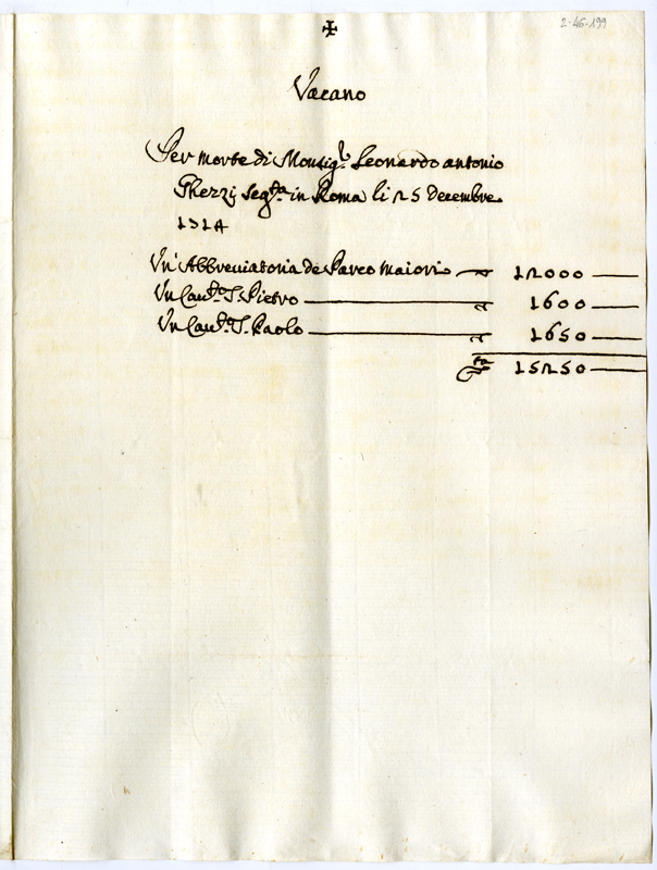 Benefici vacanti per morte di Leonardo Antonio Ghezzi (1714 dicembre 25)