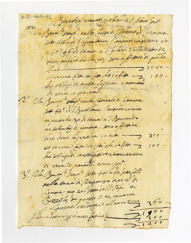 Nota su alcuni benefici (1703)
