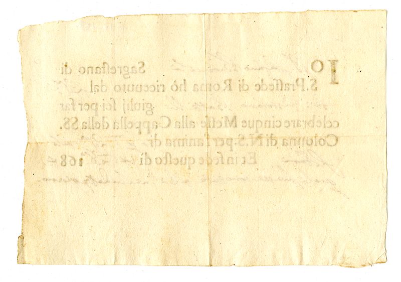 Ricevuta per la celebrazione di 5 messe in suffragio di Carlo Albani (1684 febbraio 14)