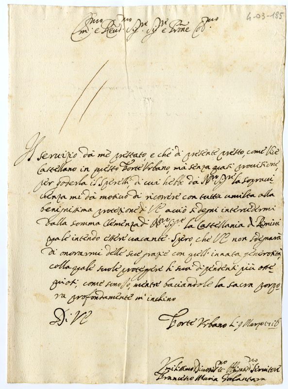 Chiede l'intermediazione del cardinale presso il pontefice per ottenere la vacante castellania di Rimini