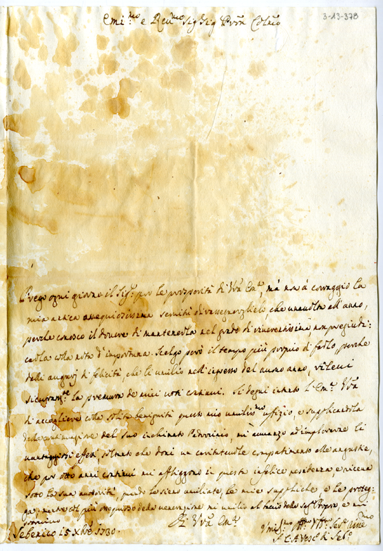 Lettera di Carlo Antonio vescovo di Sebenico al cardinale Annibale Albani (1730 dicembre 15)