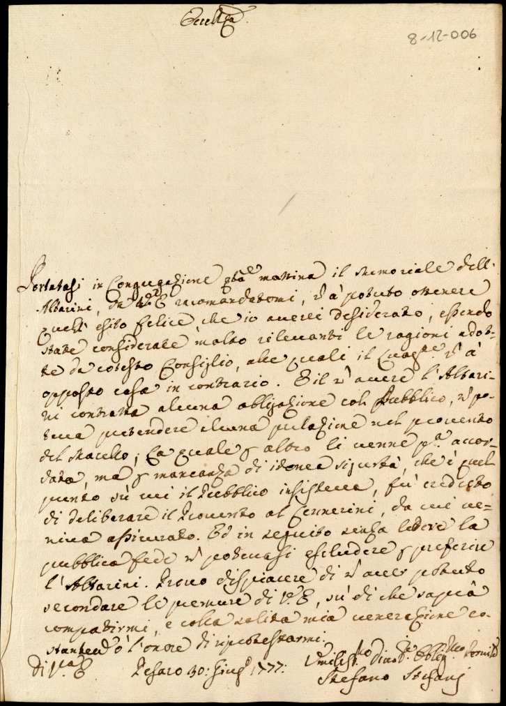 Lettere ricevute in Urbino nella permanenza in Urbino nei mesi di maggio, giugno e luglio 1777
