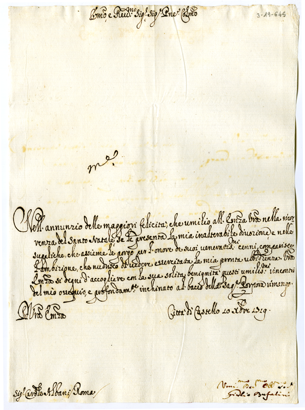 Lettera di Giulio Bufalini al cardinale Annibale Albani (1719 dicembre 10)