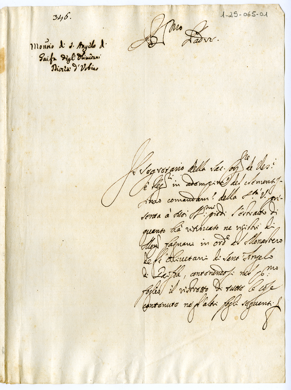 Il segretario della Sacra Congregazione de Vescovi e Regolari trasmette a Sua Santità l'estratto ritrovato nei registri del Monastero degli Olivetani di Sant'Angelo di Gaifa