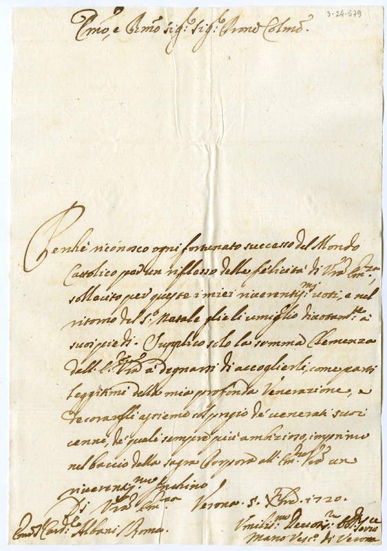 Lettera di Marco vescovo di Verona al cardinale Annibale Albani (1720 dicembre 5)