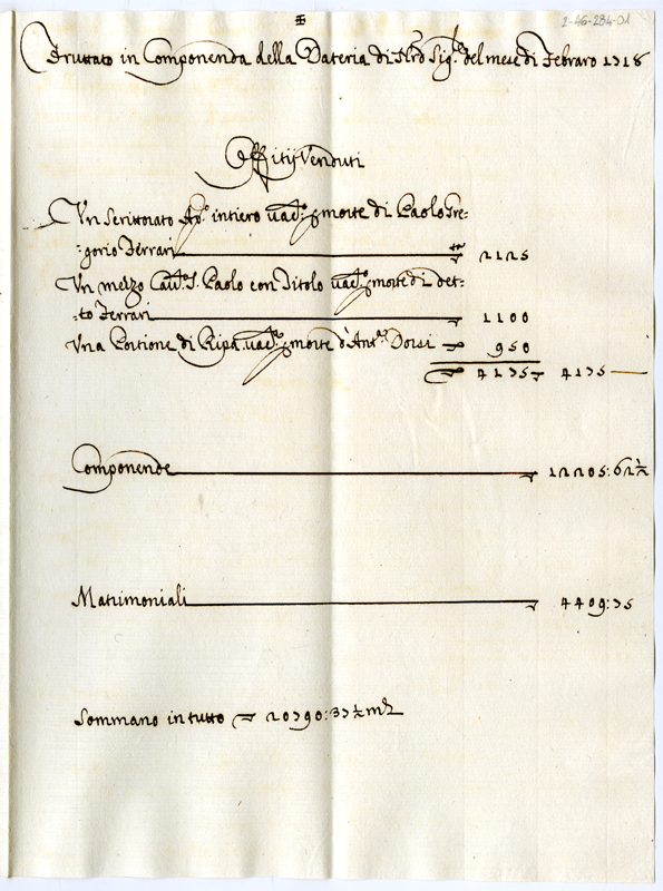 Fruttato in Componenda della Dateria di Nostro Signore del mese di Febbraro 1718