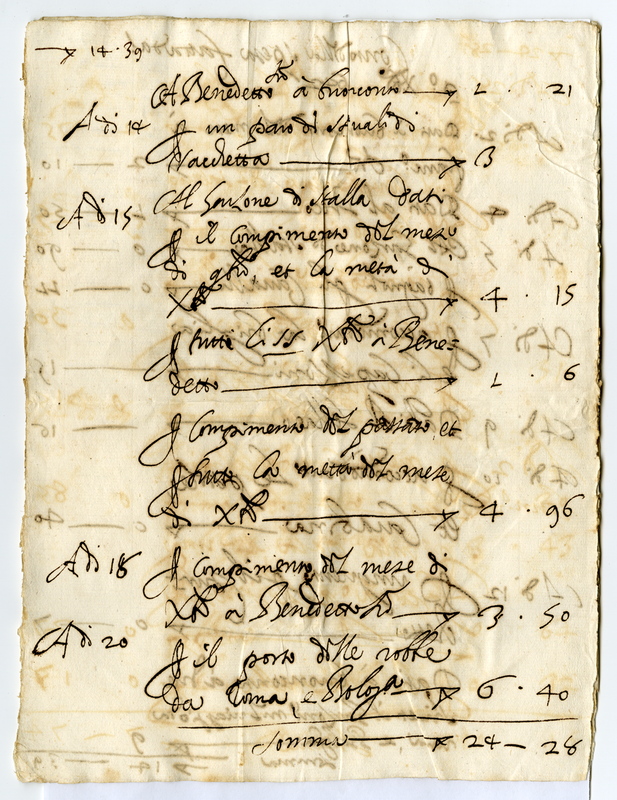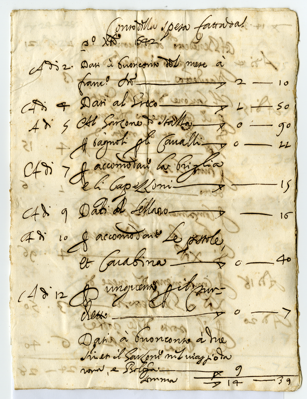 Conto della spesa fatta dal primo dicembre 1642