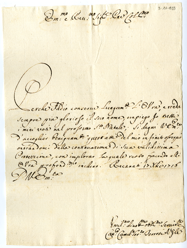 Lettera di Camillo Lodovico Terrosi vicario generale al cardinale Annibale Albani (1716 dicembre 17)