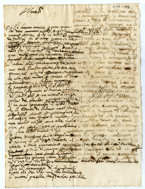 Minuta di lettera scritta da Malatesta Albani con varie notizie