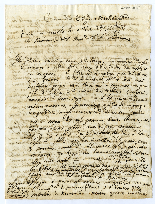 Minuta di lettera scritta da Malatesta Albani sulla malattia del barone Mattei e altre notizie