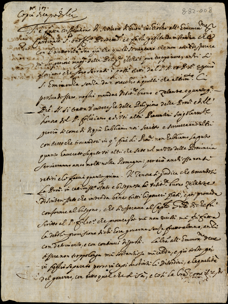 Processi diversi in varie cause dei Padri Cappuccini e Zoccolanti appartenenti all'eccellentissimo cardinal S. Onofrio