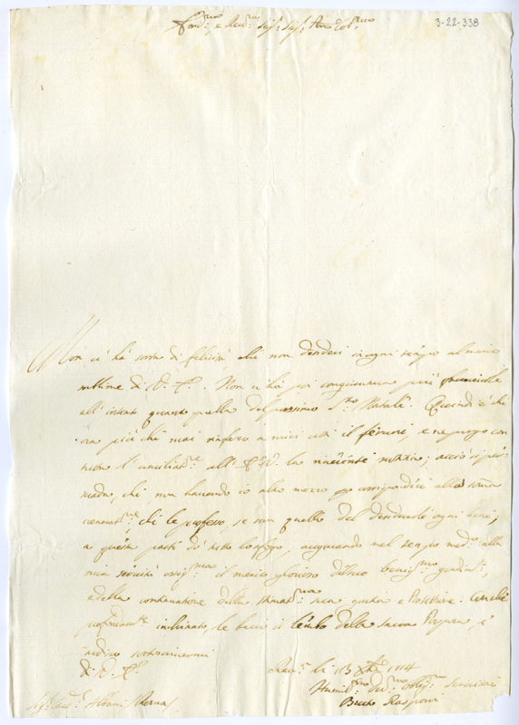 Lettera di Rasponi al cardinale Annibale Albani (1714 dicembre 13)