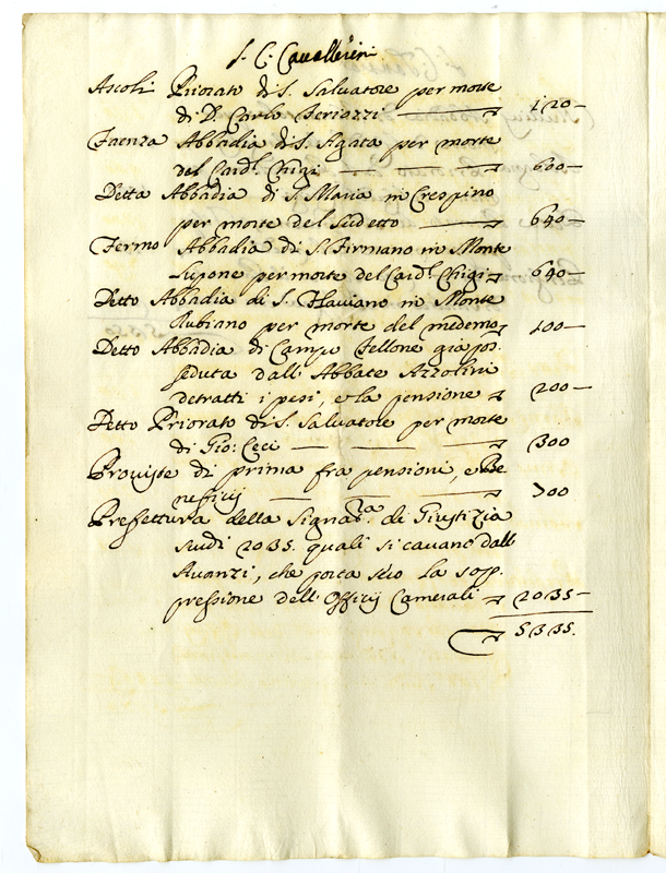| bo.livello.titolo2 | Archivio Albani|"Proviste di beneficii ecclesistici, e pensioni fatte da Papa Clemente XI. Alli suoi familiari: alli cardinali da lui creati, et ad altri, creature de' sommi pontefici antecessori; com'ancora a' varie sorti di persone meritevoli. Con le note, e memorie di proviste fatte dagli altri pontefici. 1"|Documenti contenuti | |