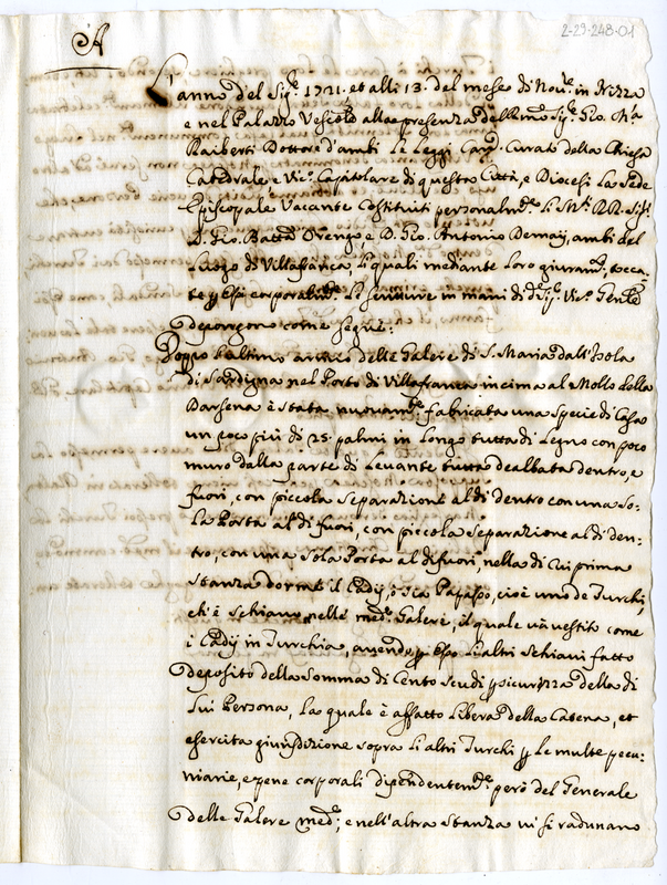 A) Descrizione della casa costruita nella darsena del porto di Villafranca usata come moschea (1721)