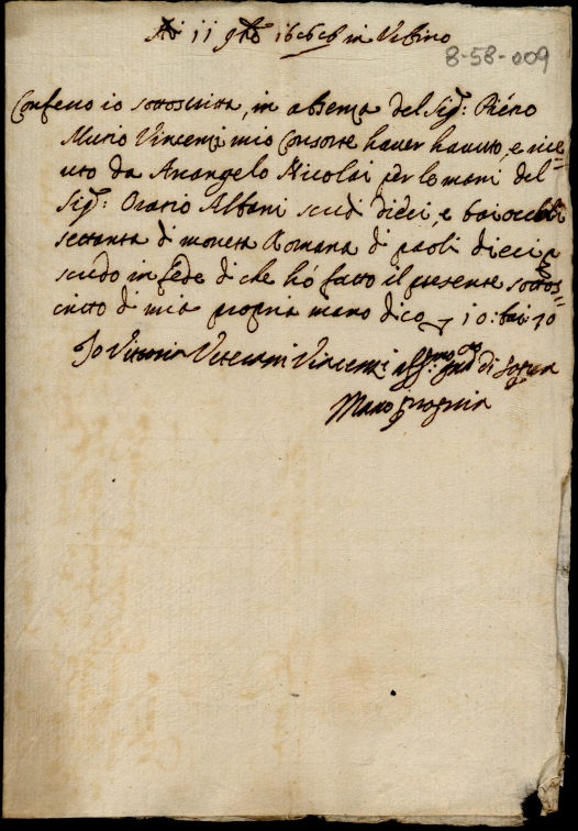 Ordini e ricevute diversi spettanti al signor Orazio Albani e a monsignor Giovanni Francesco di lui fratello, di poi Clemente XI