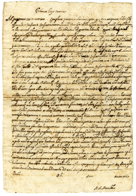 Breve d'indulgenze di Urbano VIII a favore dei fratelli della Compagnia del Santissimo Crocefisso della Grotta e di quella di San Giuseppe (1636 maggio 21)