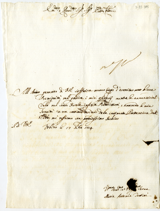 Lettera di Maria Antonia Tontini al cardinale Annibale Albani (1714 dicembre 17)