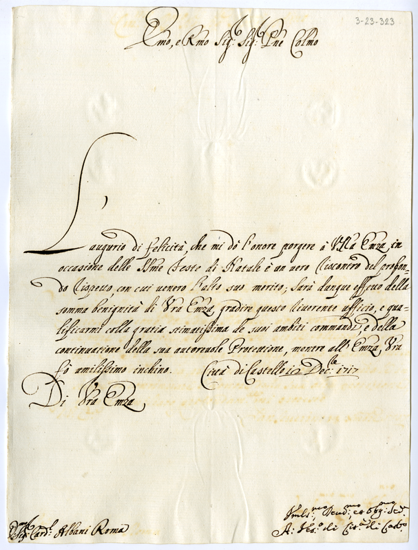 Lettera di Alessandro vescovo di Città di Castello al cardinale Annibale Albani (1717 dicembre 12)