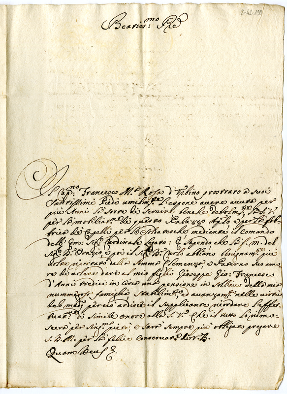 Lettera del capitano Francesco Maria Rosa di Urbino a papa Clemente XI (1700-1721)