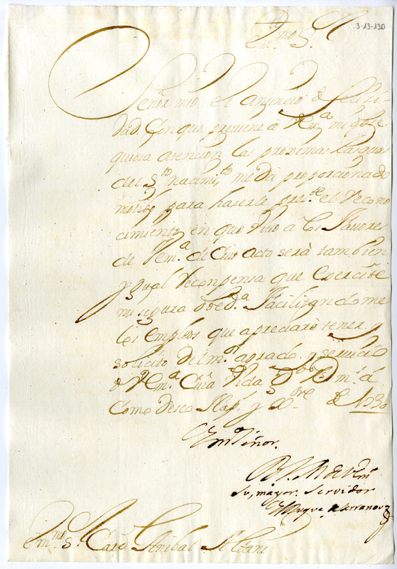 Lettera del duca di Terranova al cardinale Annibale Albani (1730 dicembre 1)