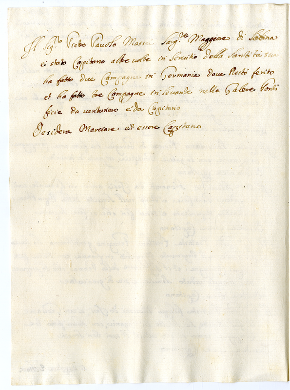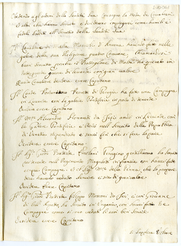 Nota dei Cavalieri ed altri che desiderano impiegarsi come umili fedeli sudditi al servizio della Santità di Clemente XI (1700-1721)