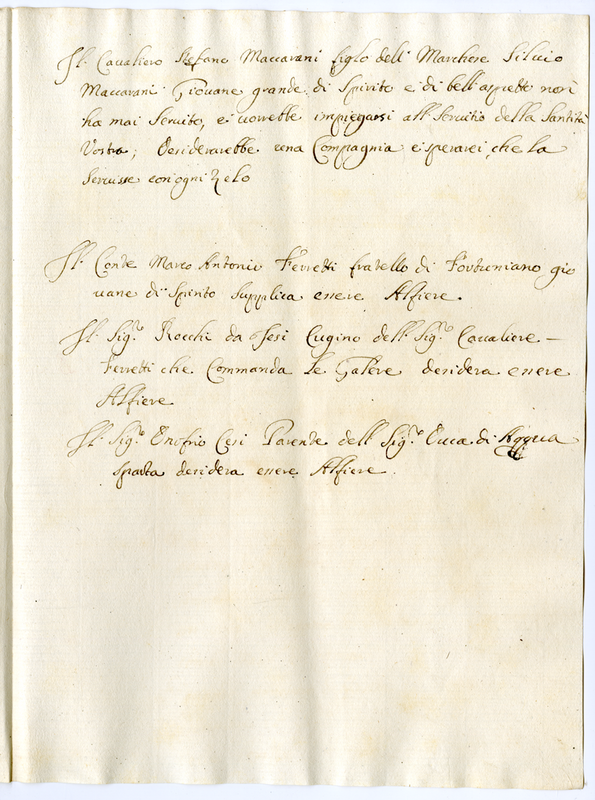 Nota dei Cavalieri ed altri che desiderano impiegarsi come umili fedeli sudditi al servizio della Santità di Clemente XI (1700-1721)
