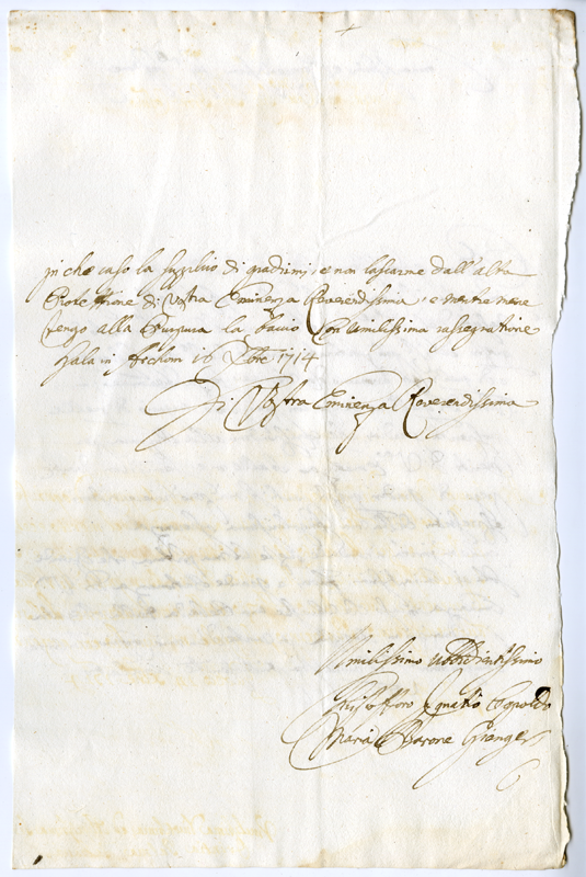 Lettera di Cristoforo Ignazio Leopoldo Maria barone di Giengen al cardinale Annibale Albani (1714 dicembre 16)