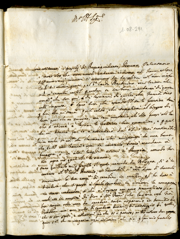 Lettera del cardinale Rapaccioli Francesco Angelo a Malatesta Albani (1644 gennaio 9)