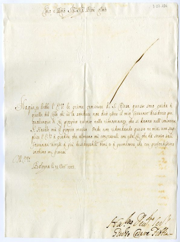 Lettera di Giulio Cesare Fibbia al cardinale Annibale Albani (1723 dicembre 15)