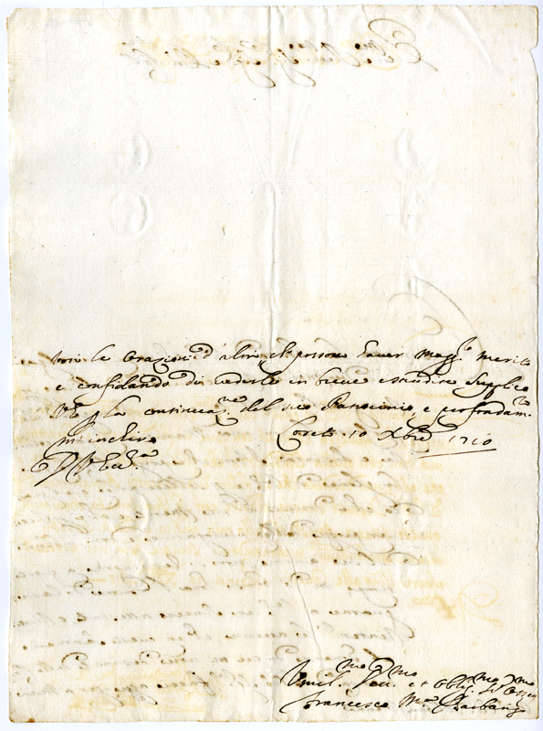 Lettera di Francesco Maria Barbarigo ad Annibale Albani (1710 dicembre 10)