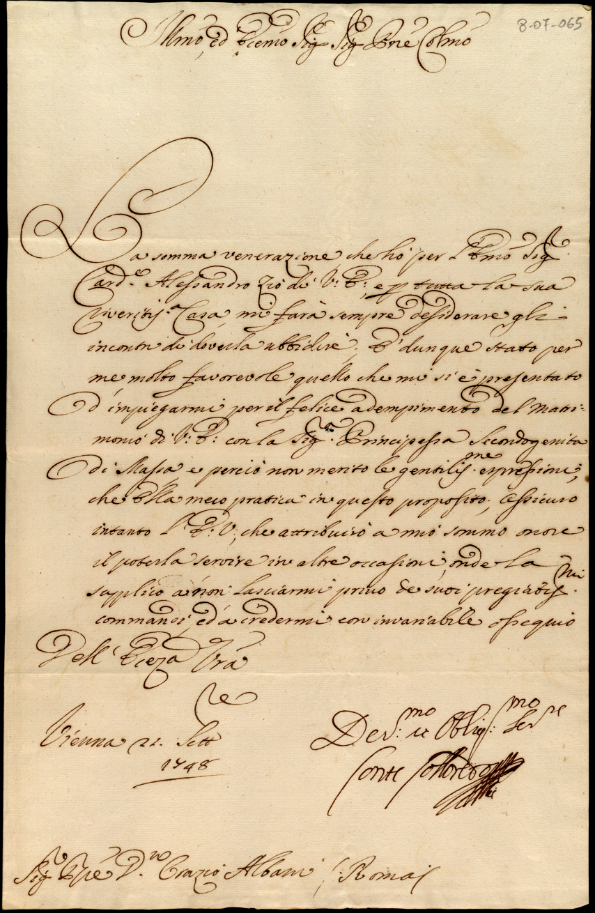 Lettere ricevute in Urbino dal signor Principe Don Orazio Albani ultimo di questo nome nell'anno 1748