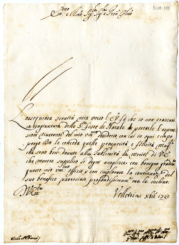 Lettera del vescovo suffraganeo di Velletri al cardinale Annibale Albani (1712 dicembre 21)