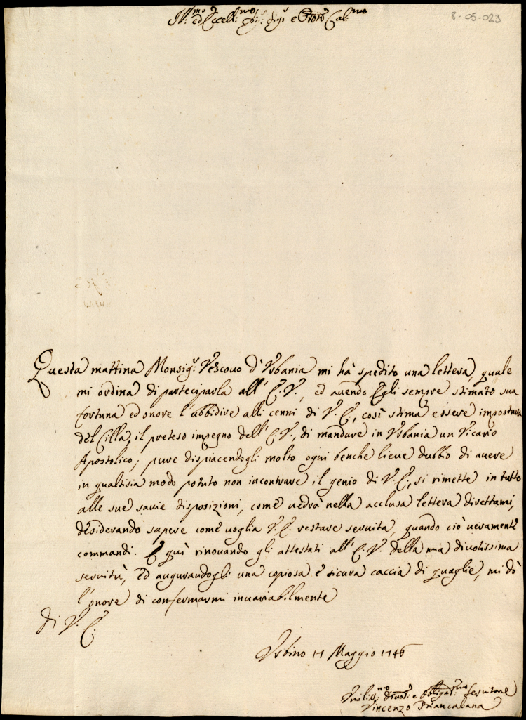Lettere ricevute in Urbino dal Signor Principe Orazio Albani ultimo di questo nome nell'anno 1746