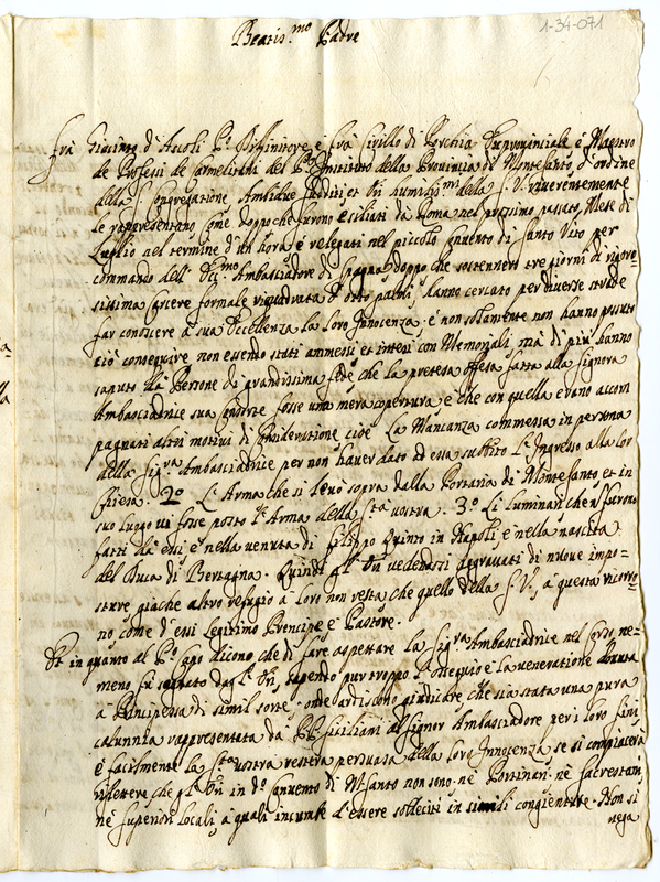 Lettera di Cirillo di Porchia e Giacinto d'Ascoli a Papa Clemente XI (1700-1721)