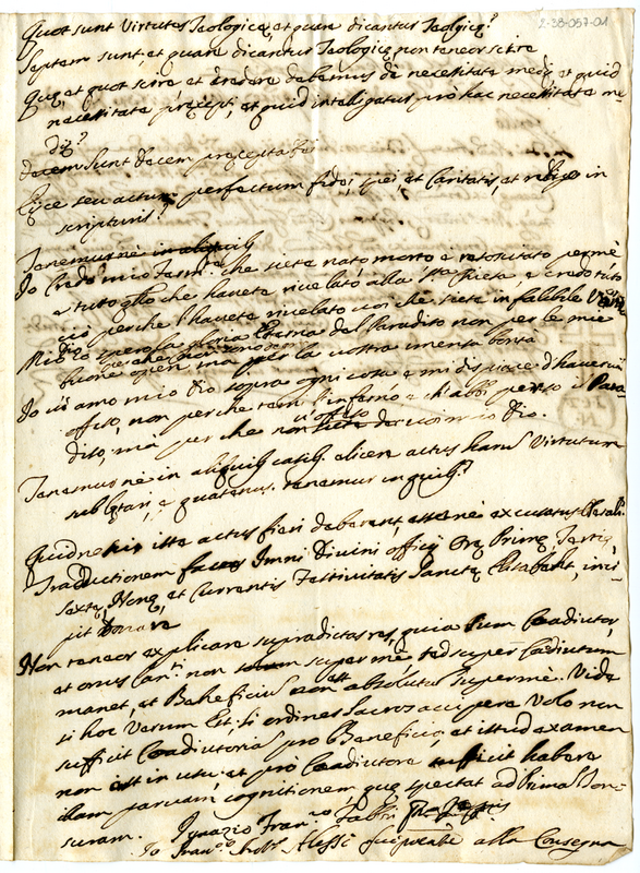 Domande fatte dal vescovo di Cesena al chierico Fabbri e relative risposte (1711 luglio 8)