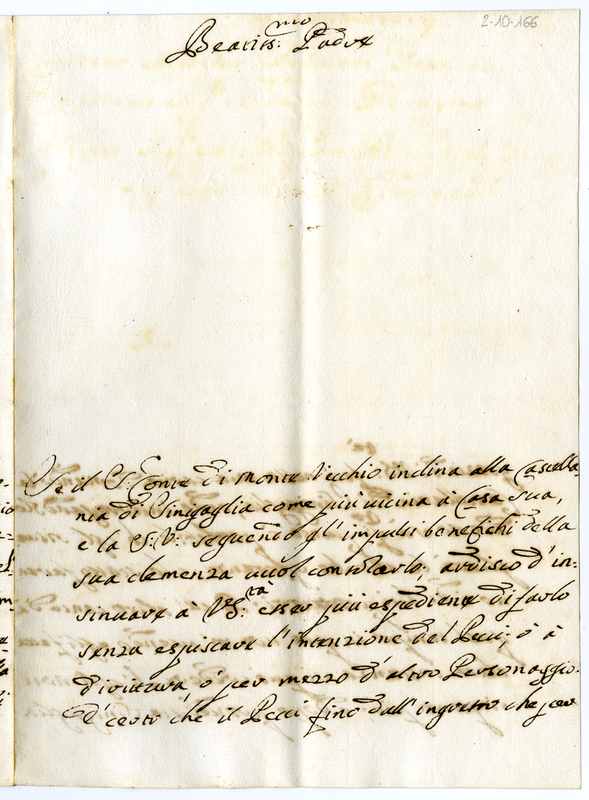 Lettera di Cornelio Bentivoglio a Papa Clemente XI (1709 aprile 17)