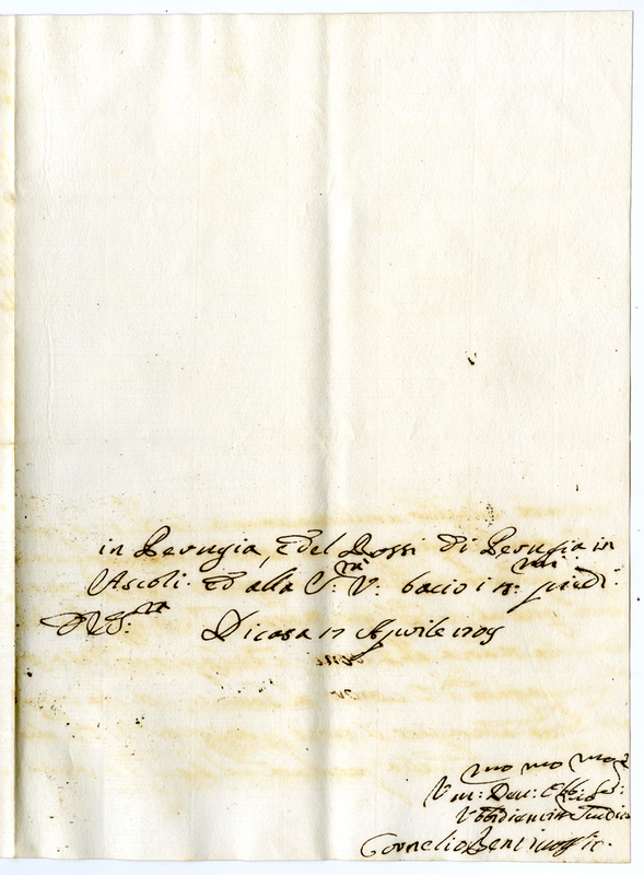4. Lettera di Cornelio Bentivoglio a Papa Clemente XI (1709 aprile 17)