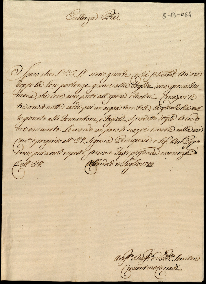Lettere diverse ricevute in Colbordolo, Pesaro e Senigallia nel 1784
