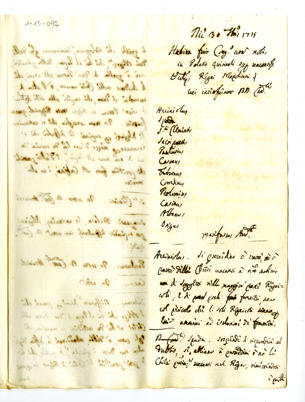 Relazione della congregazione dei cardinali tenutasi a Napoli il 30 settembre 1715