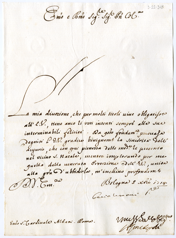 Lettera al cardinale Annibale Albani (1714 dicembre 5)