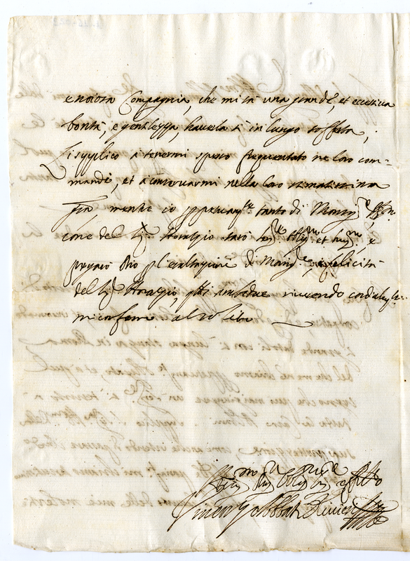 Lettera di Vincenzo Olivieri degli Abbati a Giovanni Francesco Albani (1677 ca.)