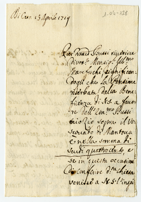 | dc.description | Pier Francesco Bussi richiede altre pensioni per il vescovato di Mantova | |