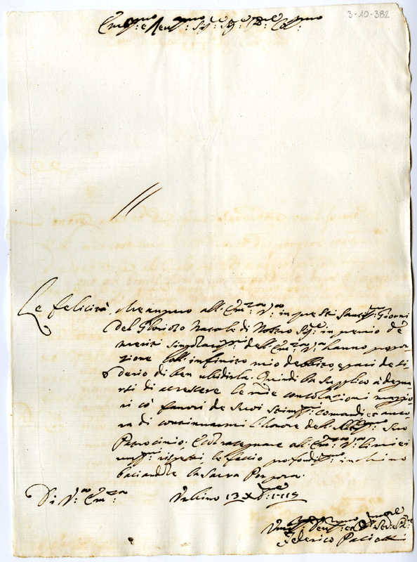 Lettera di Federico Paciotti al cardinale Annibale Albani (1715 dicembre 13)