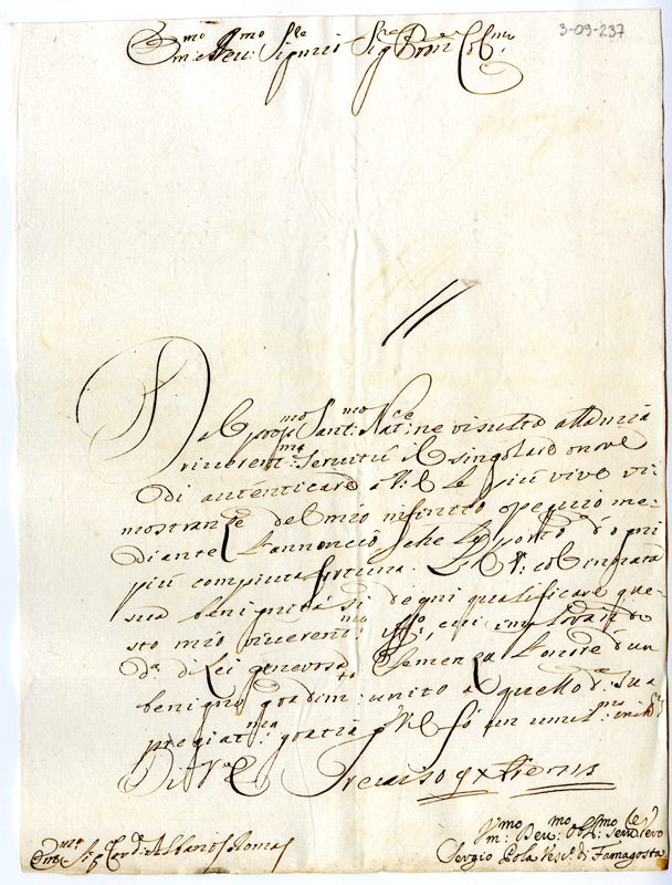 Lettera di Sergio Pola vescovo di Famagosta al cardinale Annibale Albani (1713 dicembre 9)