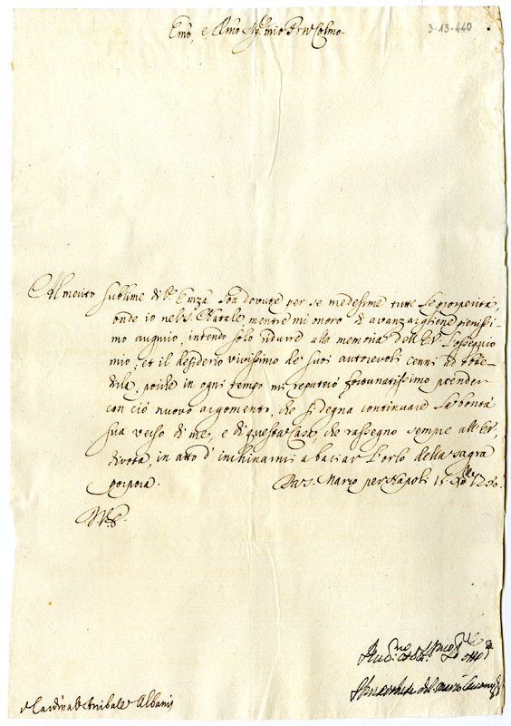 Lettera al cardinale Annibale Albani (1730 dicembre 15)